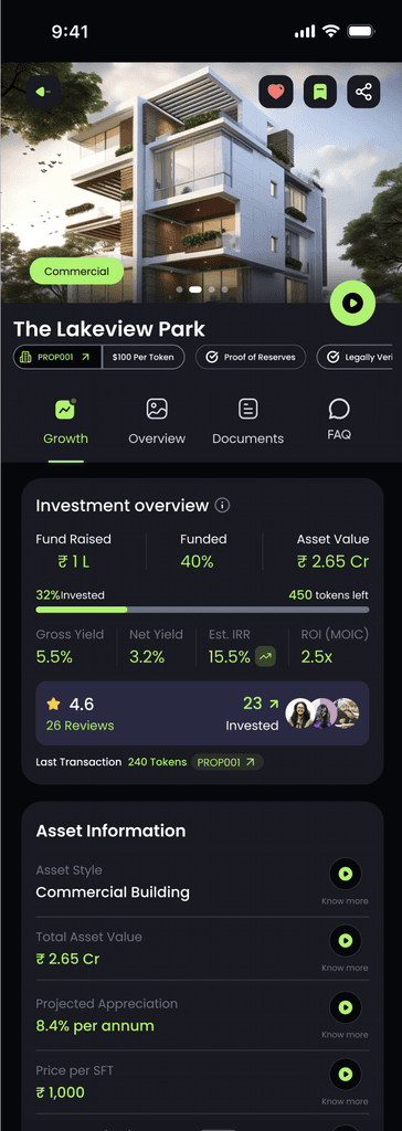 Check returns, ownership %, and net yield, then decide how many tokens you want to own, big or small.