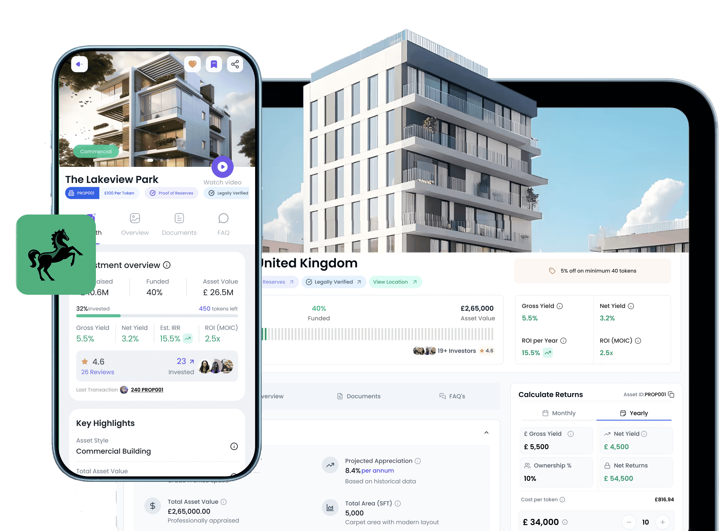 From property selection to income distribution, everything happens through an easy platform backed by blockchain’s transparency and full regulatory compliance.